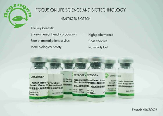 1. Healthgen Biotech recombinant bFGF has excellent batch consistency. Using self-pollination rice as the bioreactor to express the OsrhbFGF, with the world's advanced facility and top production proceeding to extract and purify the rbFGF, Healthgen Biotech can ensure the excellent consistency of OsrhbFGF from different batches.